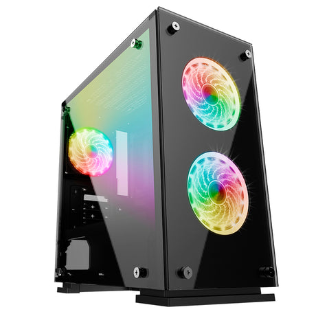 Gabinete Micro ATX Game Factor, 3 Ventiladores 120mm RGB, Cristal...