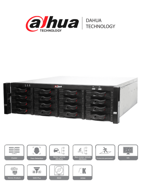 NVR DAHUA NVR616-128-4KS2 128 Canales 4K H265 2 HDMI 16 SATA 384 Mbps RAID...