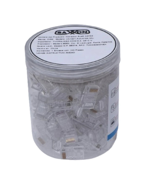 Bote 100 Plugs RJ45 Cat5e, Chapado Oro 30 Micras, Conector Redes Ethernet