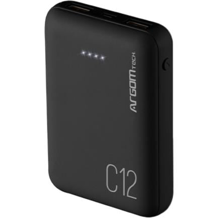 Power Bank Argomtech C12 12000mAh 2 Puertos 2.1A/2A Ultracompacto Negro