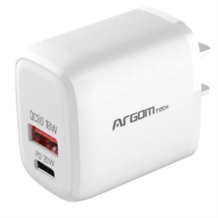 Cargador Argomtech Dual PD 38W Tipo-C y USB Carga Rápida 2 Puertos Blanco