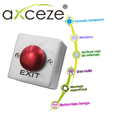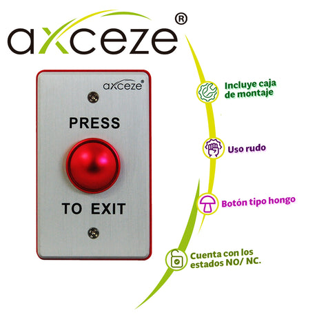 AXCEZE Botón Liberador Push Tipo Hongo AX-B70R, Aluminio, NO/NC
