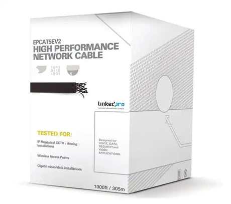 LinkedPro Bobina de Cable CAT5E 305m Negro, Sin Blindar, Uso en Intemperie