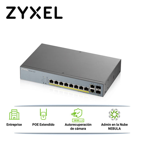 Zyxel Switch PoE Gigabit GS1350-12HP, 10 Puertos RJ45 10/100/1000Mbps,...