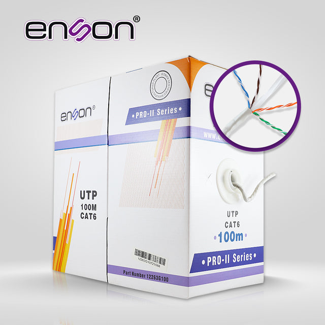 ENSON Cable UTP Cat6 12263G100, 100 Metros, 23 AWG, 100% Cobre, Uso Interior