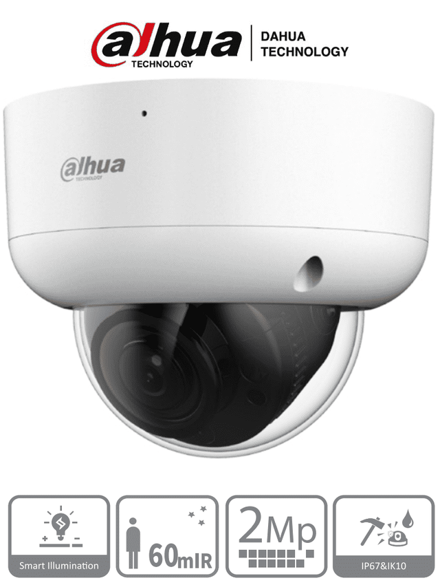 Dahua Cámara Domo Antivandalica 2MP, Lente 2.7-12mm, IR 60m, IP67