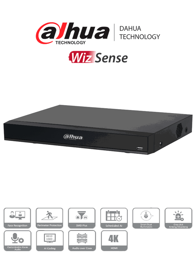 DVR Dahua XVR7108HE-4K-i3, 8 Canales 4K, IA H.265, 2 Canales Facial, 8 E/S Alarma, 1 HDD 10TB, 4 Audio, ProHDCVI