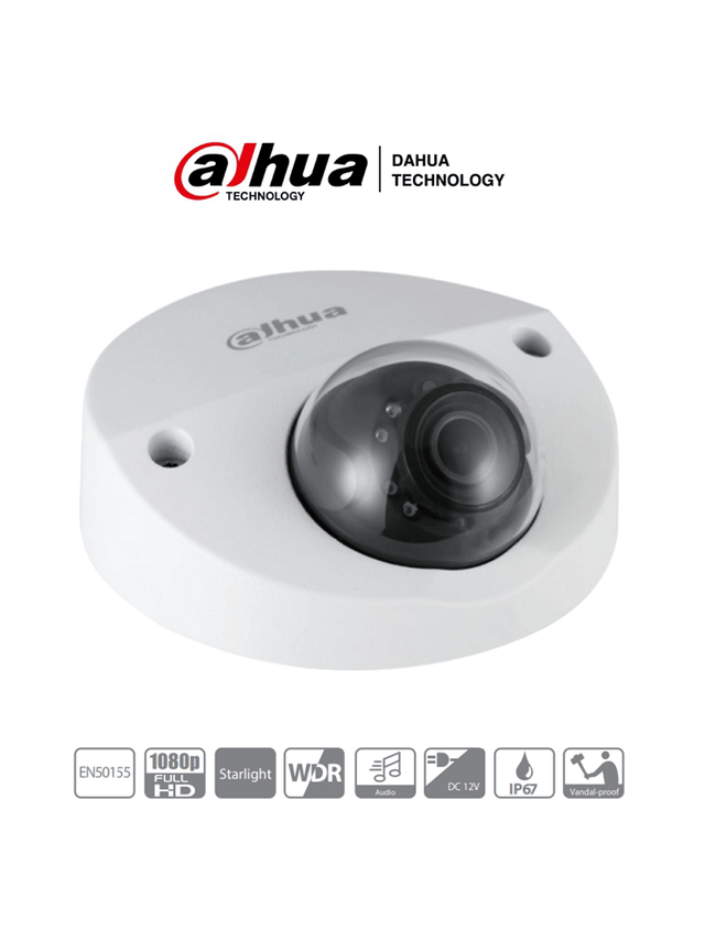 Cámara Domo Dahua 1080p/ 2MP/ Starlight/ 2.8mm/ IR 20m/ Micrófono/ WDR 120dB/ IP67/ IK10