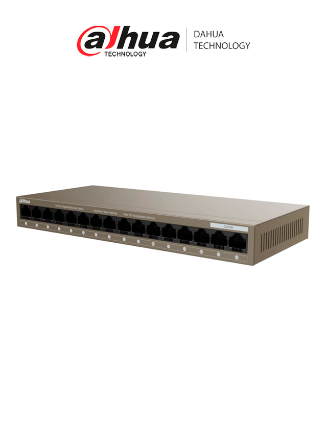 Switch Dahua PFS3016-16GT-M Gigabit 16 Puertos Capa 2 10/100/1000 Base-T Carcasa Metalica 32Gbps 23.8 Mbps 2Mb
