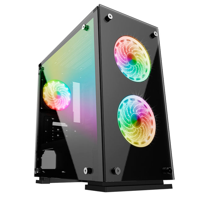 Gabinete Micro ATX Game Factor, 3 Ventiladores 120mm RGB, Cristal Templado, Fuente 550W