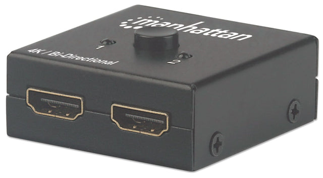 Switch bidireccional HDMI 4K de 2 puertos Manhattan 207850 / Color negro / Selección manual / Pasivo / Sin alimentación