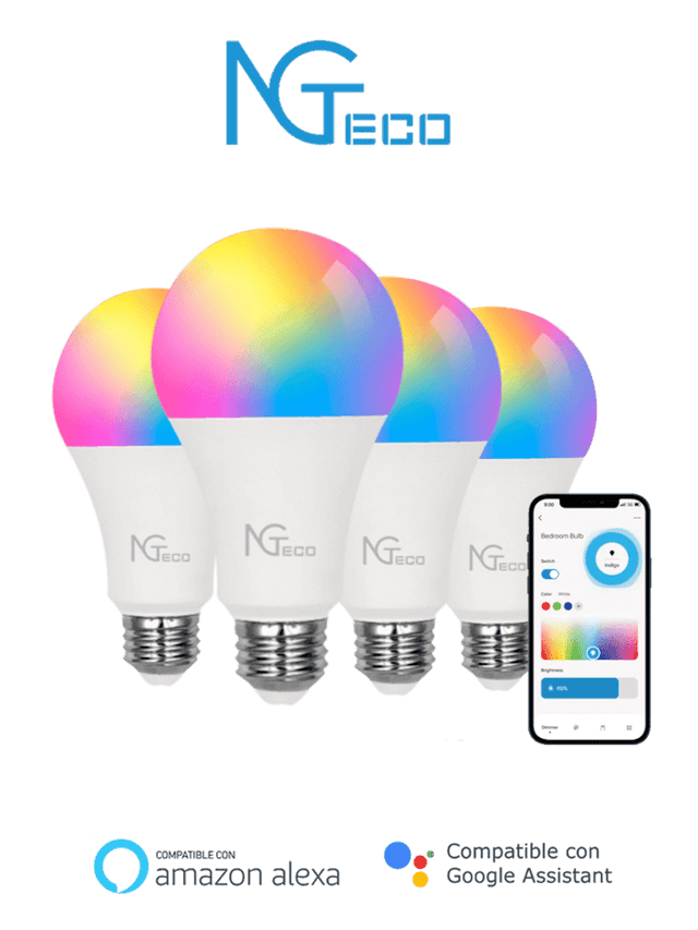 | Uso del producto | Este paquete de 4 focos inteligentes WiFi te permite controlar la iluminación de tu hogar de forma remota a través de la aplicación móvil, con la posibilidad de ajustar colores, programar temporizadores y utilizar comandos de voz con Amazon Alexa y el Asistente de Google. |