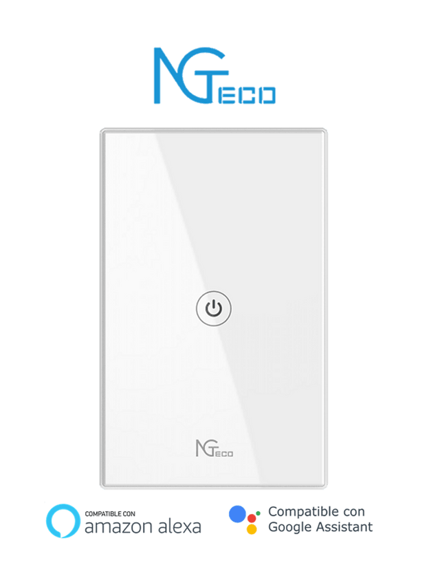 NGTECO NGS101 - Apagador Inteligente WiFi 1 Botón Touch / Control Remoto / Temporizador / Panel Táctil / WiFi 2.4 GHz / Alexa y Google Home