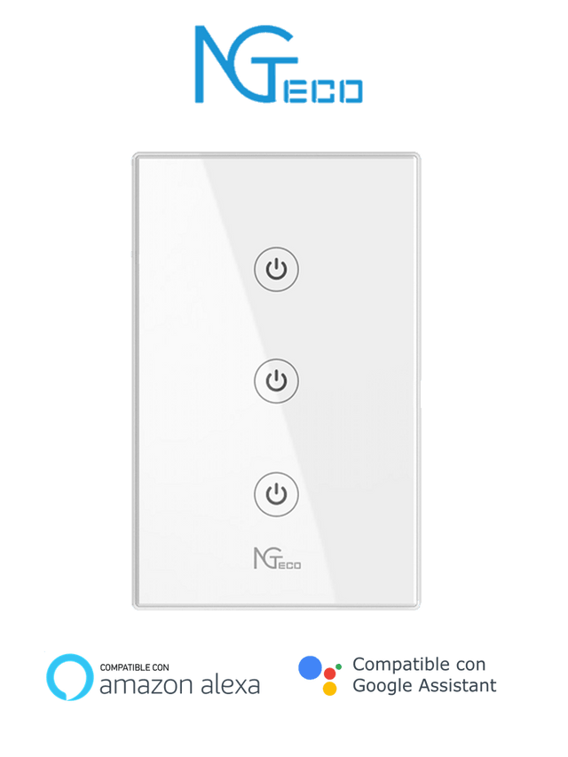 NG-S103 Apagador inteligente wifi 3 botones touch / control remoto / temporizador / panel táctil / wifi 2.4 ghz / compatible con alexa y google