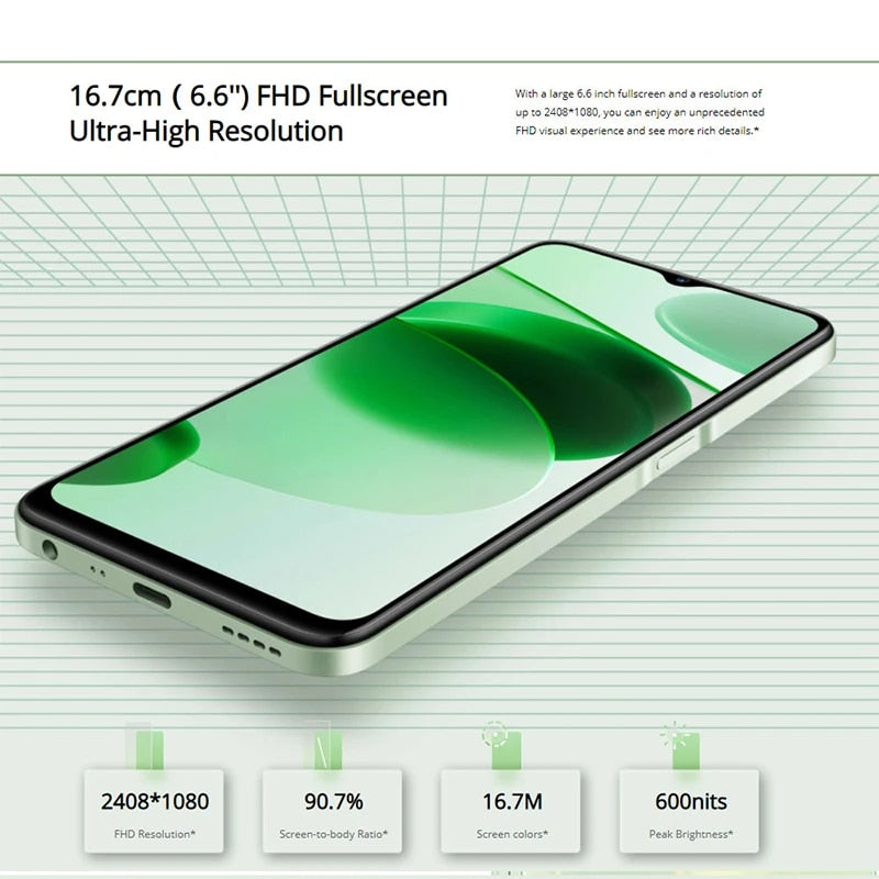 | Pantalla: | FHD de 16.7 cm (6.58”), Resolución: 2408*1080, Relación pantalla-cuerpo: 90.7 %, Velocidad de muestreo táctil: 180Hz, Brillo máximo: 600 nits, PPI: 401 |