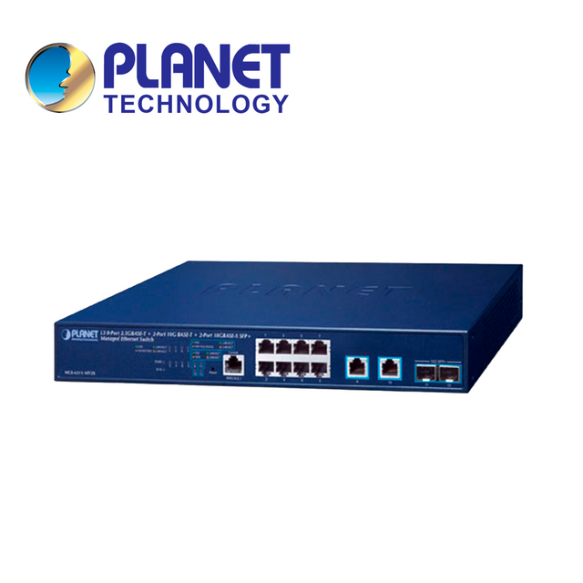 PLANET SWITCH Administrable L3 MGS-6311-10T2X, 8 Puertos RJ45 10/100/1000/2.5Gbps, 2 SFP+ 1/10Gbps, Routing Dinámico
