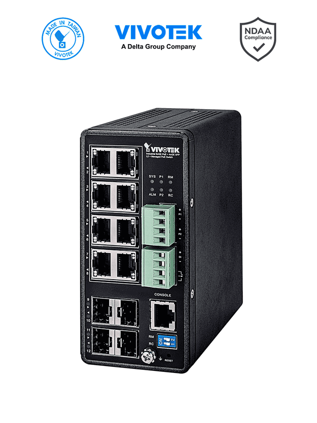 VIVOTEK Switch PoE Industrial AW-IHT-1271, 8 Puertos GE PoE, 240W Totales, Administrable