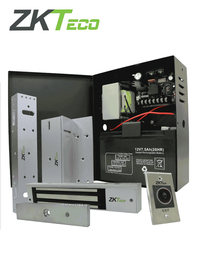 Kit de Acceso ZKTECO ACAKIT / 1 Botón Salida / Cerradura Electromagnética / Fuente Alimentación / Batería Respaldo / Soporte